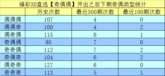 前7次出现奇偶偶类型奖号分别为:986、722、304、928、320、920、562,其下期分别开出奖号:398、367、465、812、509、953、441。