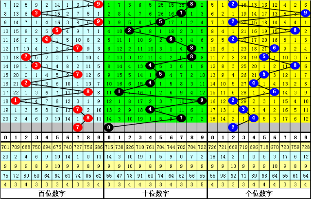 其中,组三出现8次,组六出现12次,单选0-9分别开出: