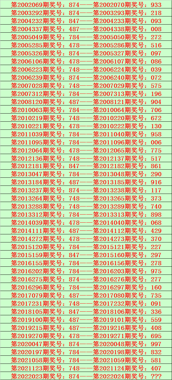 福彩3D第2022024期开奖日期:2022年1月24日,历史上第024期已开出了20次奖号,历年同期号码分别为:197、838、584、271、686、296、016、429、773、388、997、268、344、875、624、709、664、637、827、030。