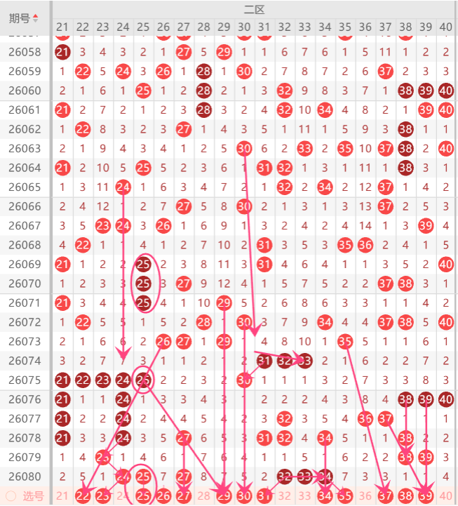 二区间注意打底号22.23.25.27.29.30.34.35.37.39.40中关注3-4码开出机会,