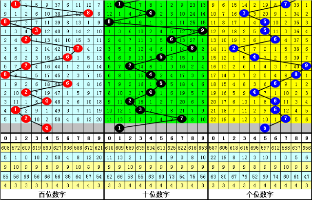 百位分析:该位最近10期出现范围在0-7之间,波动了8个点位,波动范围较大,上期开出号码2,上升了1个点位,本期预计该位号码上升。另外该位最近10期大小比为3:7,小号走势热出,本期看好小号继续出现,参考号码4。