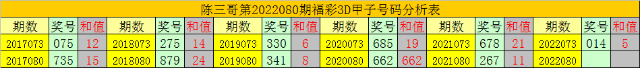 则,第2022080期奖号可以参考第2022073期奖号:014。