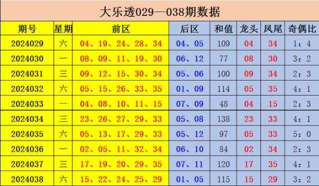 大乐透上期奖号为:前区15、22、24、25、29;后区01 05;龙头17,凤尾35,和值115,奇偶比为3:2。