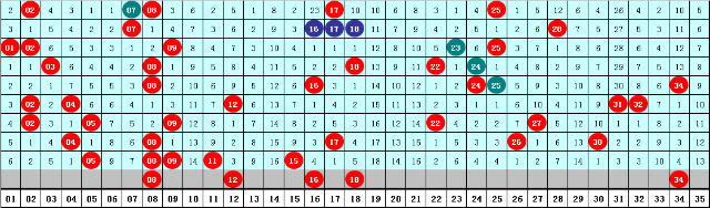 说明:大乐透前区35个号码,前区每期开出5个奖号,在此以35期为一个周期进行号码的冷温热统计,每个号码平均出现5次,以出现0-3次的号码为冷码,出现4-6次的号码为温码,出现6次以上的号码为热码。后区35期共70个号码,每个号码平均出现5。8次,以出现0-4次的号码为冷码,出现5-7次的号码为温码,出现7次以上的号码为热码。