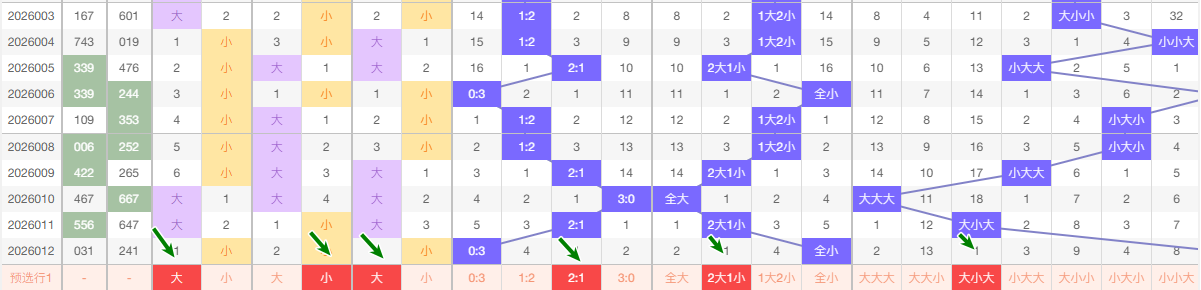 最近的5期当中十位大数出现的频次3次 小数出现2次 ,趋势平和 本期看好走小