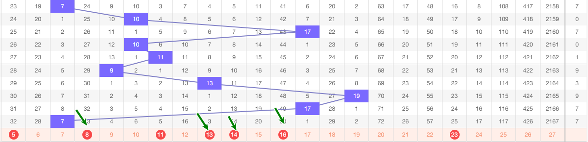 本期看好 范围5-23 之间定和值8-11-14-16从图上来看近5期的和值 9 13 19 17 7 13 19 7 1路和值 9 0路和值 17 2路和值本期看好0路和值参考 这五期和值波动不大 下期防守大波动