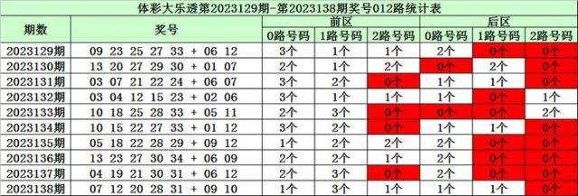 陈华大乐透第2023139期奖号012路分析: