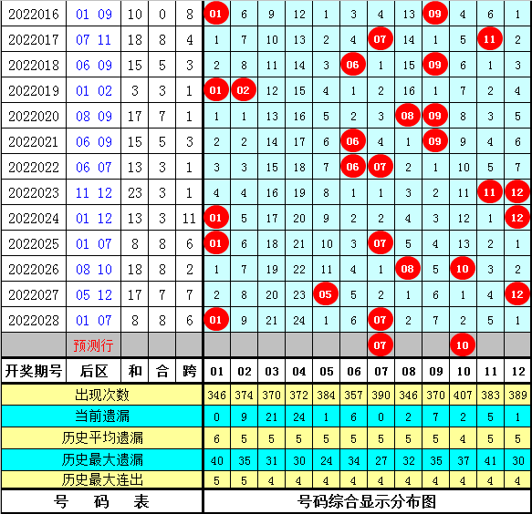 上期开奖:大乐透第2022028期开奖号码:04、09、16、17、35+01、07,前区开出5个尾数4、5、6、7、9,没有同尾奖号。