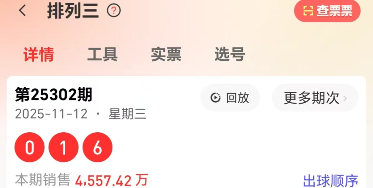 302期开奖号为016,形态组六,质合比1:2,和值7,跨度6,012路比为2:1:0,大小比1:2,奇偶比1:2