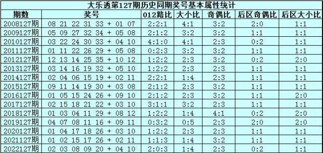 大乐透第2023127期历史同期号码分析: