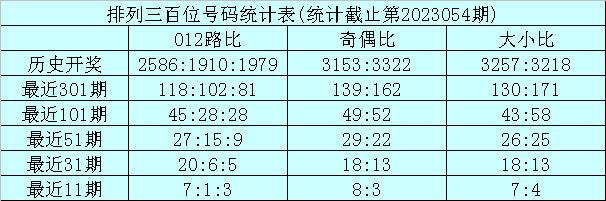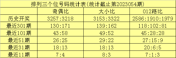 上期回顾:排列三第2023054期奖号为:348。奖号形态组六,大小比1:2,奇偶比1:2,012路1:1:1。