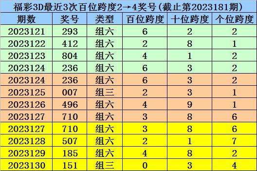第2023124-第2023126期奖号:236、007、496,其下期奖号为:710,首位号码跨度为3;