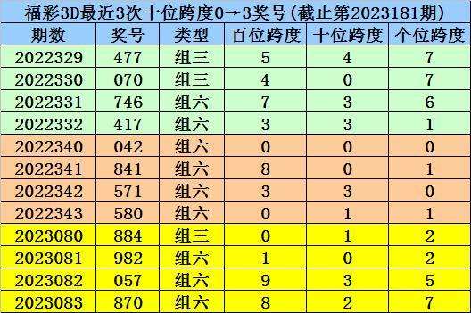 第2023080-第2023082期奖号:884、982、057,其下期奖号为:870,中位号码跨度为8;