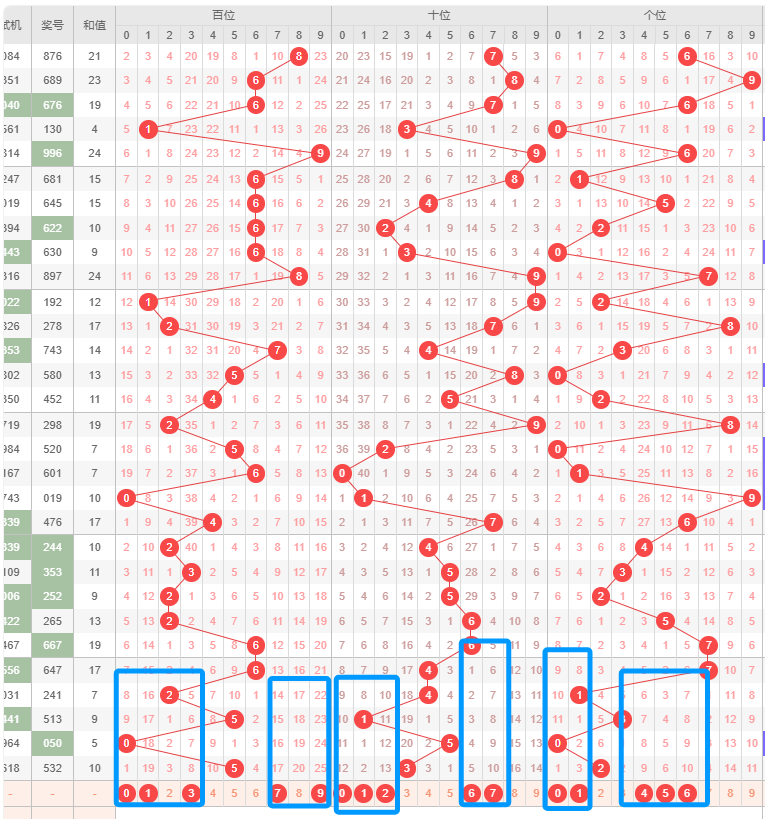 个位:个位开号上期开出2号球,往前一期开的是0号球,上期振幅为2,振幅变小,本期看好小振幅号码,其次是振幅稍微变大;从开号位置来看,比较看好右边的号码,看好4-5-6,往左的话,看好0-1;从012路走势来看,上期开了2路,本期看好0路,其次是1路,防2路;从奇偶看,上期开了偶数,本期还是看好偶数;