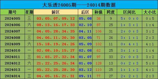 大乐透第2024014期奖号为:04 05 16 21 31+09 11,前区三区比为,2:2:1,和值为77,大小比为2:3,跨度为27,后区奖号为大大组合09 11。