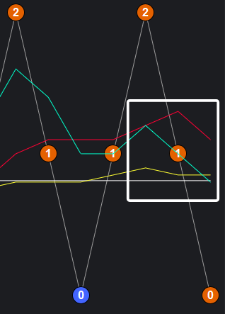 本人使用遗漏期数来区分红球的冷温热码,遗漏3期及以下的为热码,遗漏4~9期的为温码,遗漏10期及以上的为冷码。其中,热码记为+1,温码记为0,冷码记为-1。同时,加入当期星期的10期内号码,也分为热码温码冷码,最终组成9类:热热码(+2)、热温码(+1)、热冷码(0)、温热码(+1)、温温码(0)、温冷码(-1)、冷热码(0)、冷温码(-1)、冷冷码(-2),这些红球按照各号码类型计数相加,得到一期的组合冷热码和值