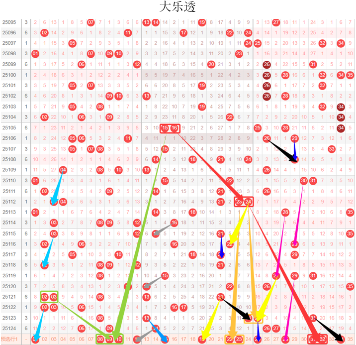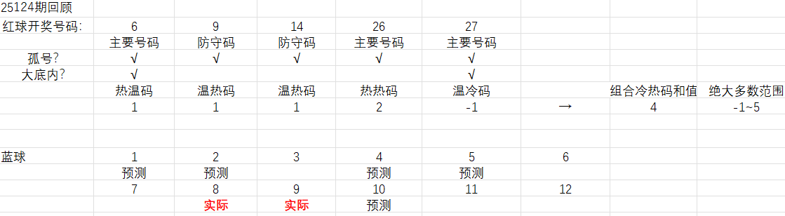 注意5个红球的组合冷温热码和值范围保持在-1~5