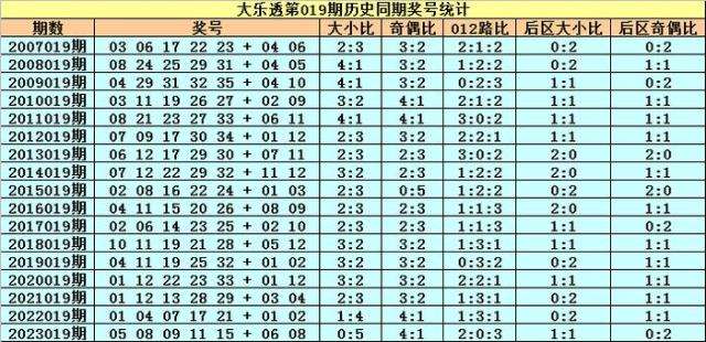 小王子大乐透第2024019期历史同期奖号属性分析: