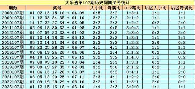 小王子大乐透第2024107期历史同期奖号属性分析: