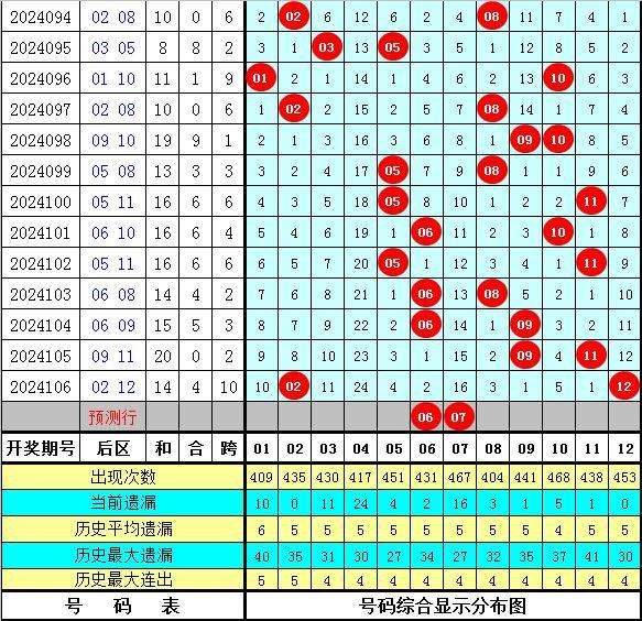后区分析:在第107期历史同期开奖中,后区奇偶总比例为16:16,奇偶号码走势基本持平,今年第107期预计奇偶号码继续平衡开出,看好一奇一偶组合出现,两码关注06和07。