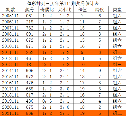 夏姐体彩排列三第2022111期奖号推荐: