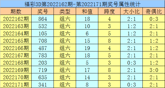开奖回顾:福彩3D第2022171期开出奖号341。奖号形态为组六,奇偶比为2:1,012路比为1:2:0,大小比为0:3,和值为8,跨度为3。