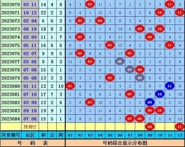 后区分析:后区最近7期开出奖号组合为:07+08、05+08、01+11、07+10、03+09、09+10、07+08,其中一奇一偶组合开出5次,全奇组合开出2次,全偶组合没有出现,本期后区关注一奇一偶组合,参考号码09、12。
