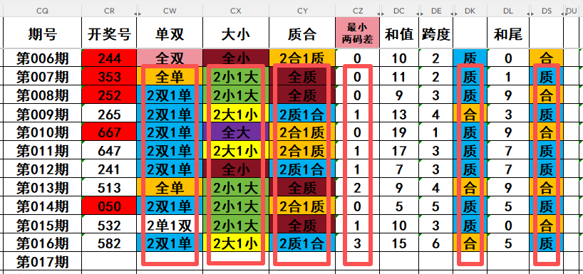 3,最近10天当中,两质一合开出3次,两合一质开出3次,全质数开出4次,全合数开出0次。当前开奖号全合号码遗漏26期,近期需重点关注开奖号全合号码的回补!