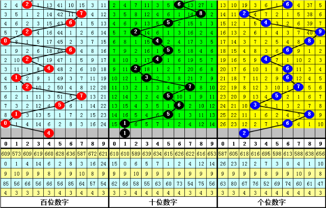 其中,百位奇偶比为1:2,大小比为0:3,本期百位一码参考4。