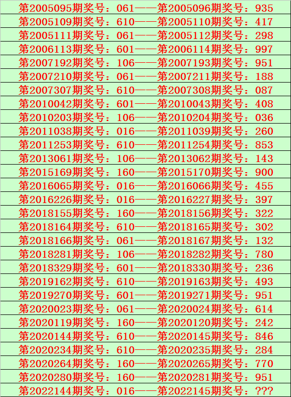 排列三第2022144期开出奖号016,该号码历史上组选出现29次,前28次开出之后期下期奖号为:935、417、298、997、951、188、087、408、036、260、853、143、900、455、397、322、302、132、780、236、493、951、614、242、846、284、770、951,详见下表: