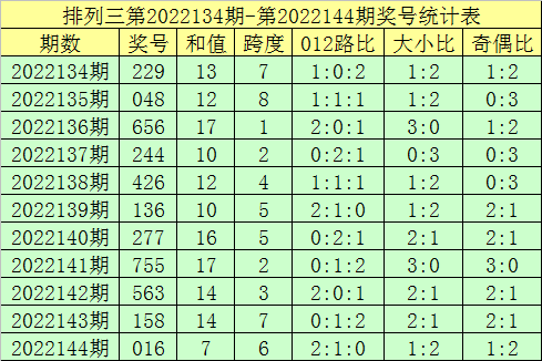 开奖回顾:体彩排列三第2022144期奖号为:016,类型:组六。