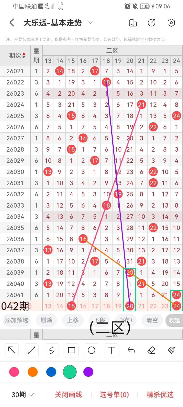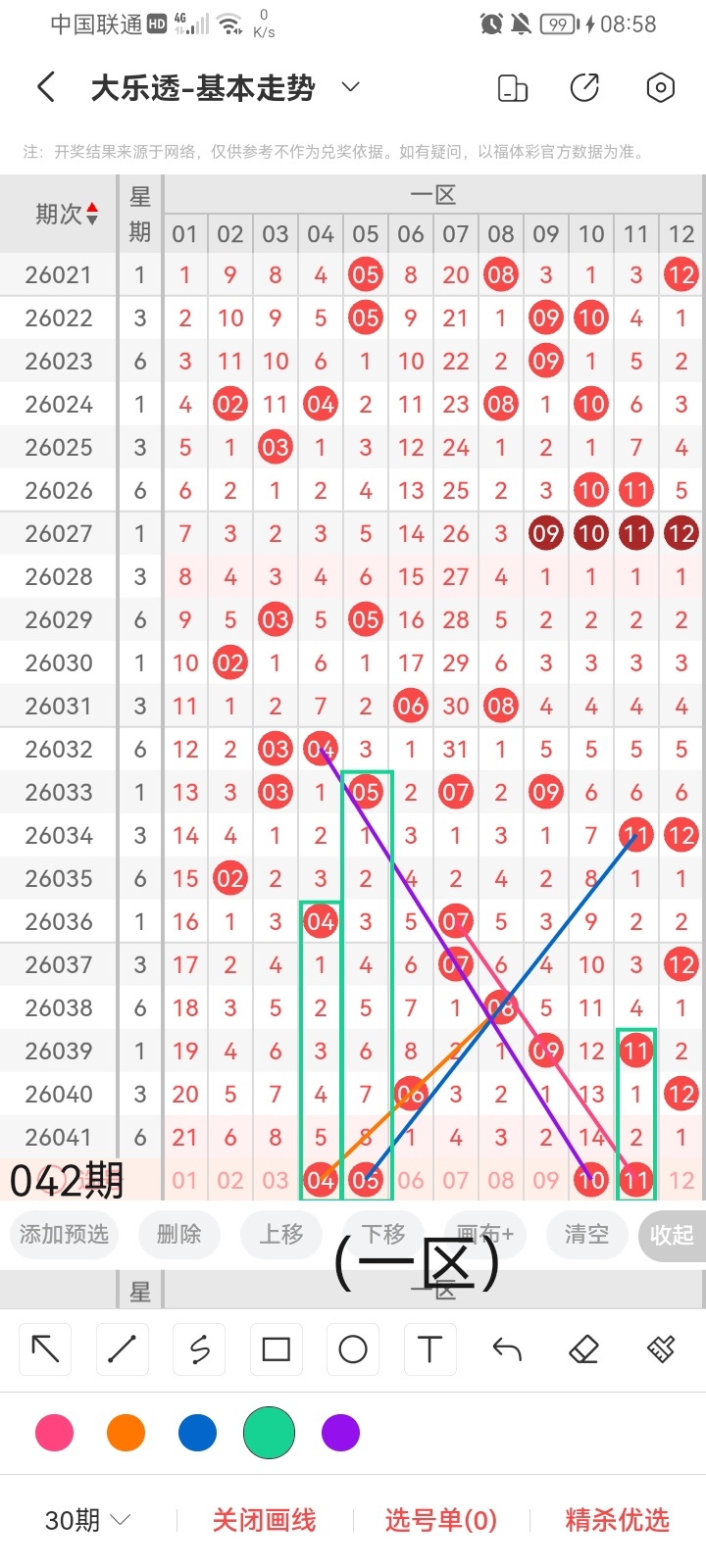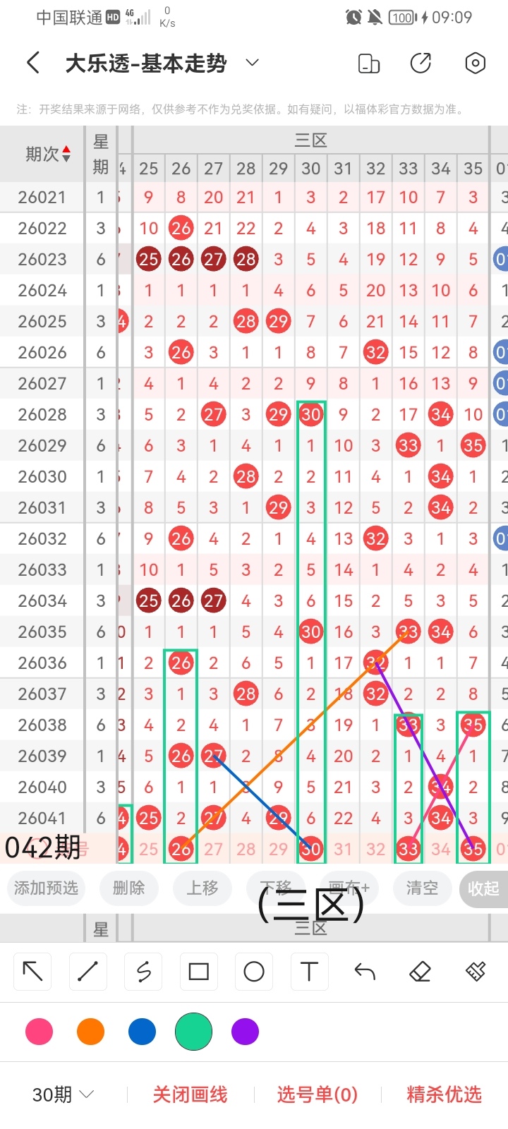 通过以上对上期的简单回顾,下面进入大乐透第2026042期(下面简称本期)的选号分析: