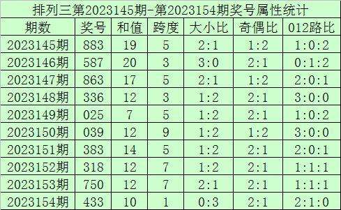 上期回顾:排列三第2023154期开奖号:433,奖号和值:10,奇偶比2:1,大小比0:3。