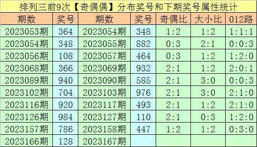排列三第2023166期奖号为128,直选奇偶分布为:奇偶偶,该奇偶分布历史上共出现了787次,前100期出现7次。