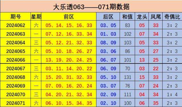 大乐透上期奖号为:前区06 10 15 34 35,后区02 10;龙头06,凤尾35,和值100,奇偶比为2:3。