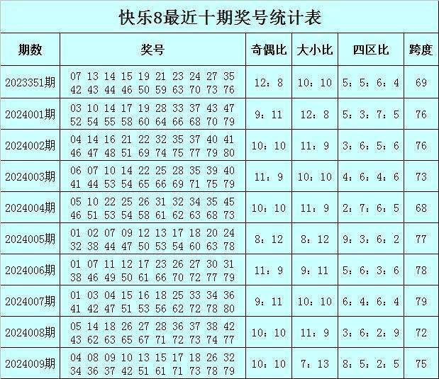 福彩快乐8第2024009期开奖回顾:04 08 09 10 13 15 17 18 26 32 34 36 37 42 51 61 71 73 78 79,其中奖号奇偶比开出10:10,大小比开出7:13,包含5个小奇号码:09 13 15 17 37,8个小偶号码:04 08 10 18 26 32 34 36,5个大奇号码:51 61 71 73 79,2个大偶号码:42 78。