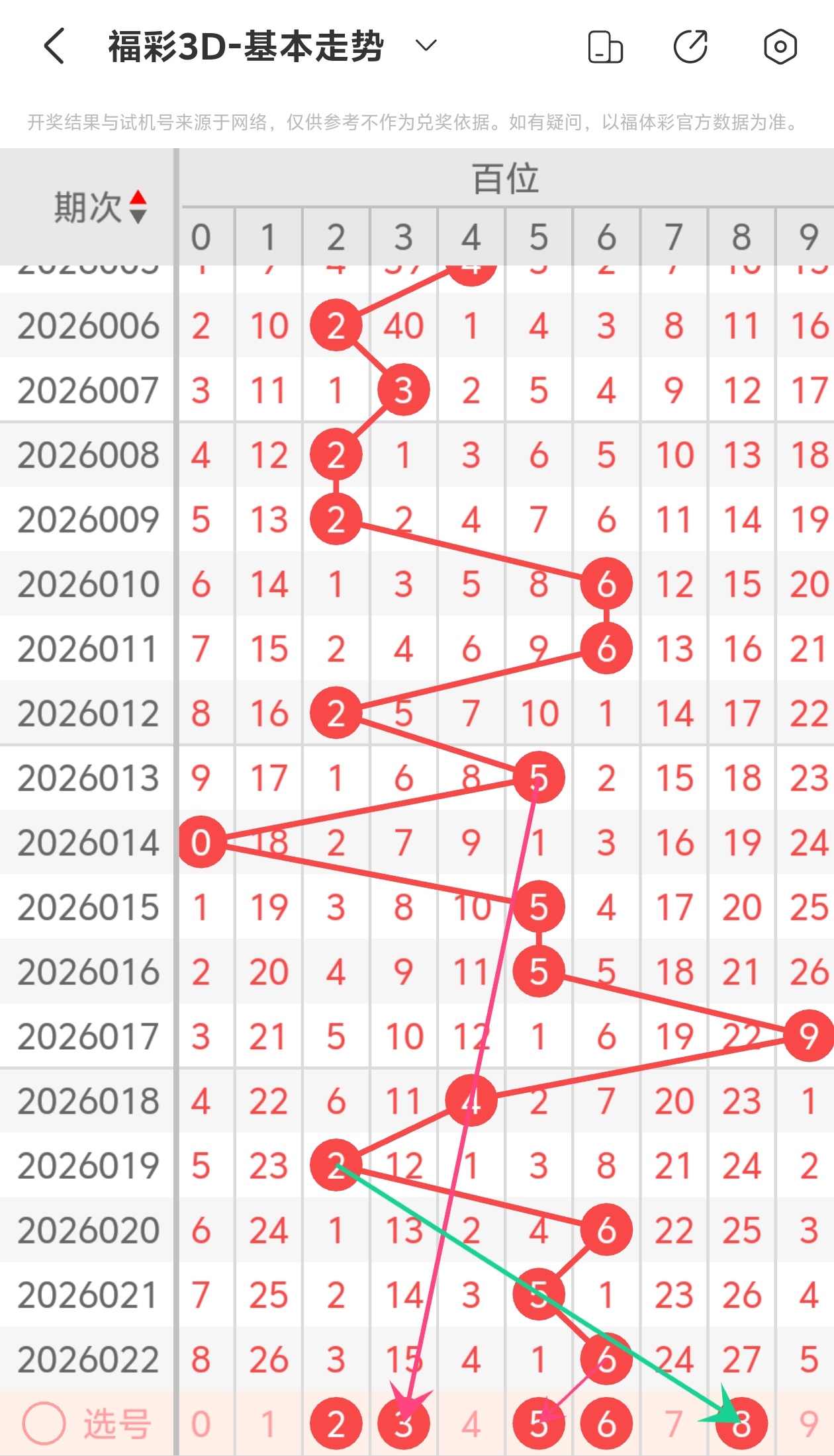 下面是福彩3D的百位走势图分析