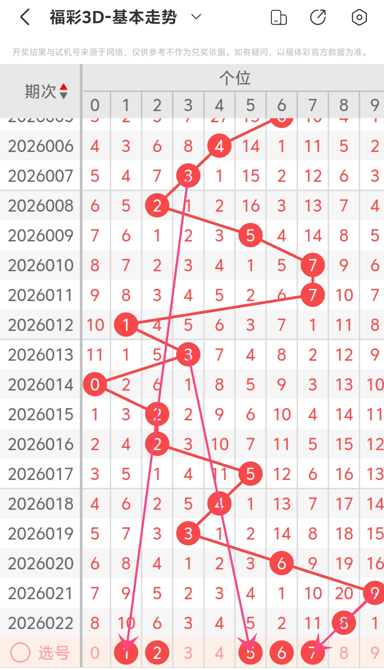 下面是福彩3D的个位走势图分析