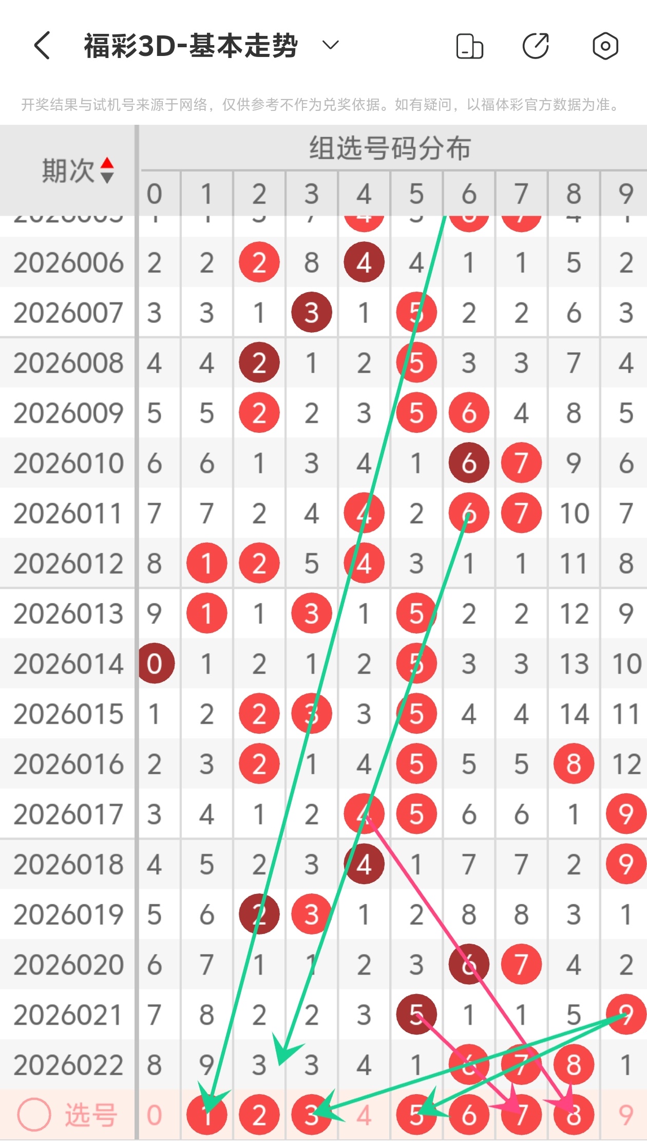 通过以上简单分析,我们看下26023期号码的定位分析: