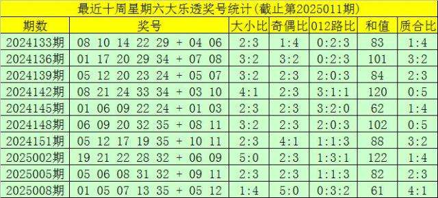 后区分析:最近10周星期六全大开出4次,全小开出2次,一大一小开出4次;一奇一偶开出6次,全奇开出3次,全偶开出1次,本期后区注意两码03+08。
