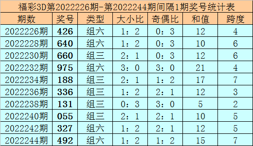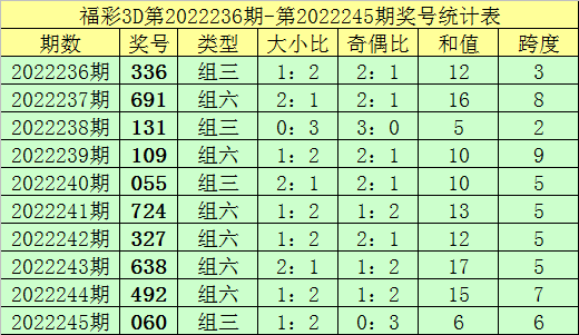 其中大小比1:2,奇偶比0:3,和值6,跨度6。