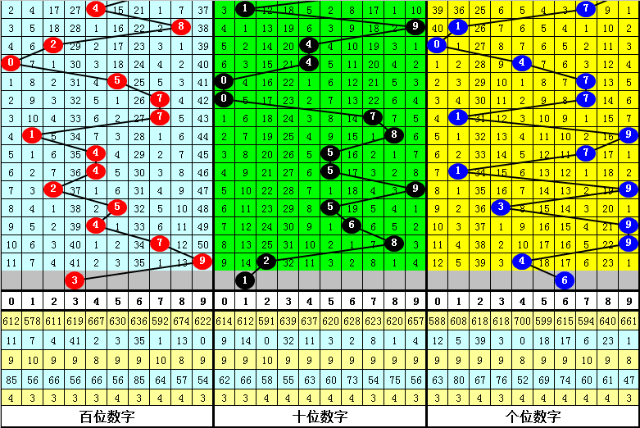 百位分析:该位上期奖号为9,出现0路、奇数、大号,在前11期奖号,该位012路比为1:7:3,1路号码最热,目前012路号码遗漏期数分别为0、1和3,近期百位注意0路号码走热。