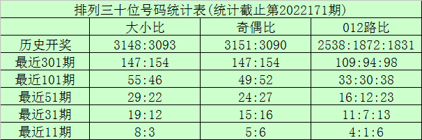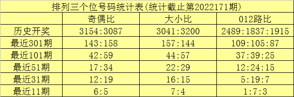 在连续11期奖号中,该位奇偶比为5:6,奇数出现较少,本期适当关注奇数回补;