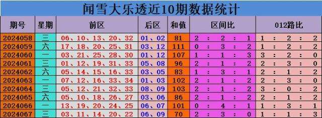 上期回顾:大乐透开奖:前区03 11 14 20 22后区06 09,当前前区和值70,区间比2:3:0,012路比1:1:3。