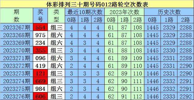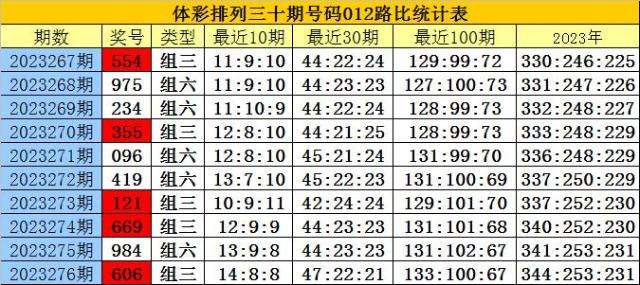 开奖回顾:排列三第2023276期奖号为:606,号码012路比为3:0:0。