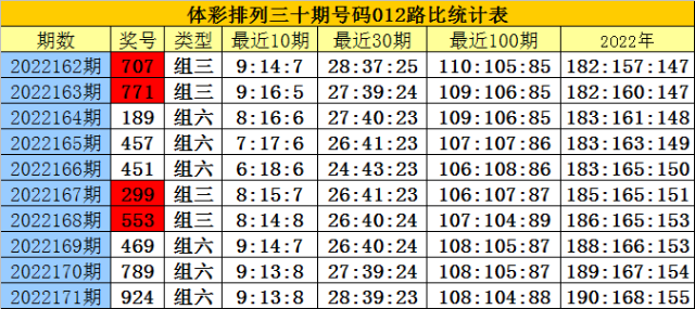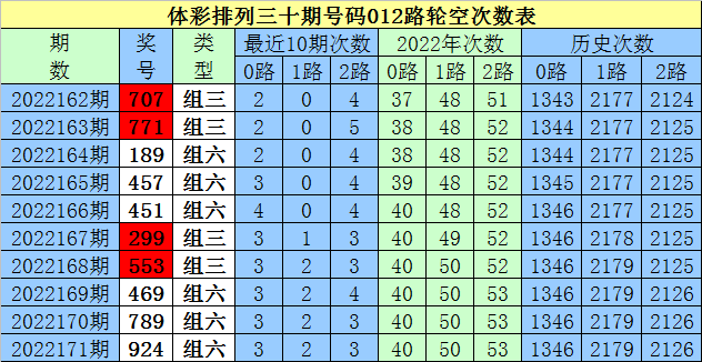 开奖回顾:排列三第2022171期奖号为:924,号码012路比为1:1:1。