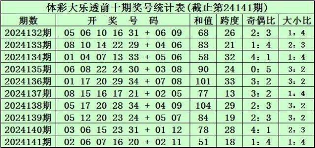体彩大乐透第24141期奖号为:02 06 07 16 20 + 02 11。前区奖号和值为51,跨度为18,奇偶比为1:4,大小比为1:4。后区奖号和值为13,跨度为9。
