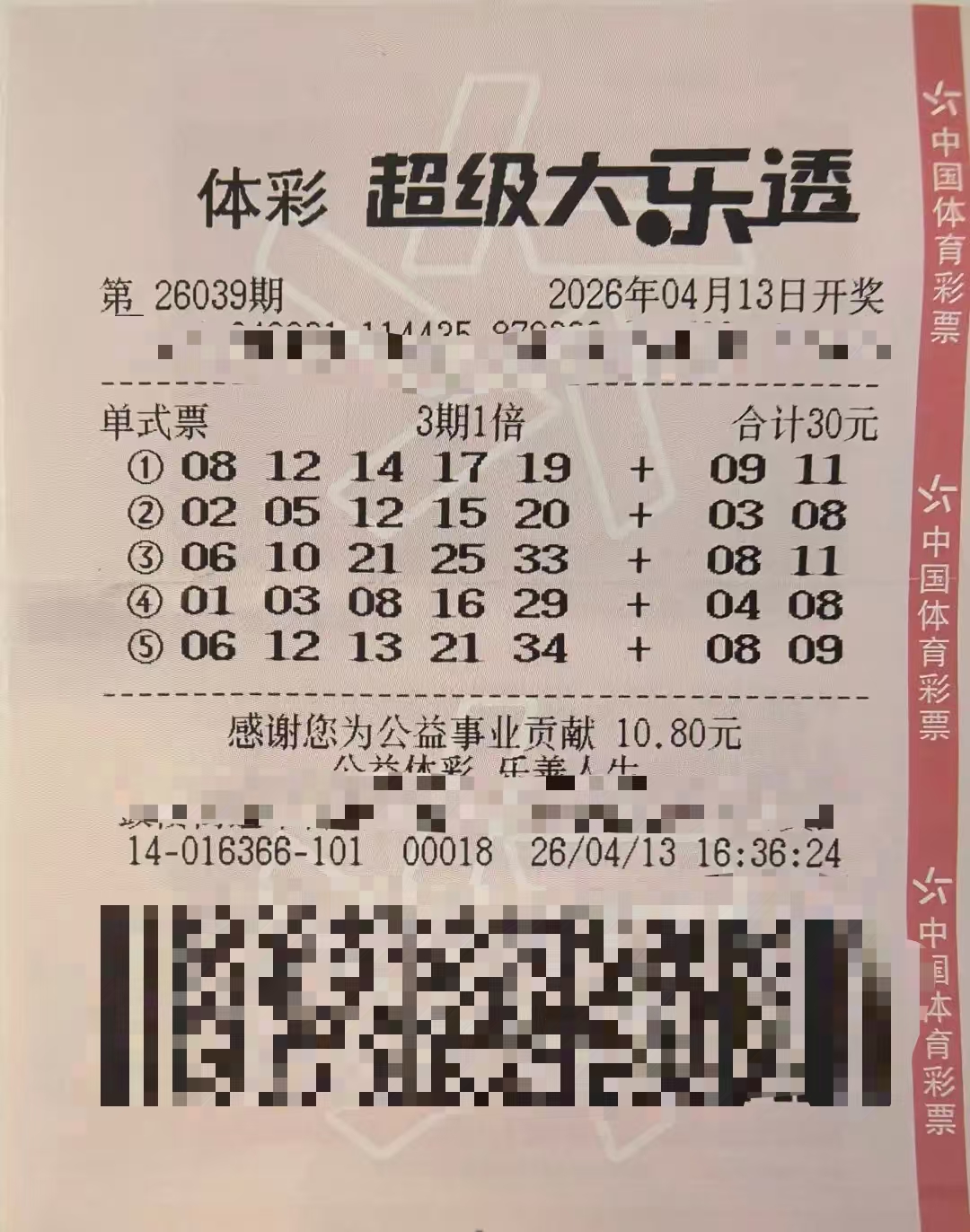 2026年4月15日晚,超级大乐透第26040期开奖,全国共中出6注一等奖,其中山东唯一1注花落济宁市兖州区。4月20日,幸运彩民金先生(化姓)在家人的陪同下低调现身领奖,凭借一张机选的多期单式票,成功揽获749.24万元大奖。领奖时,金先生主动捐出20万元善款用于公益事业,展现了大奖得主的社会担当。