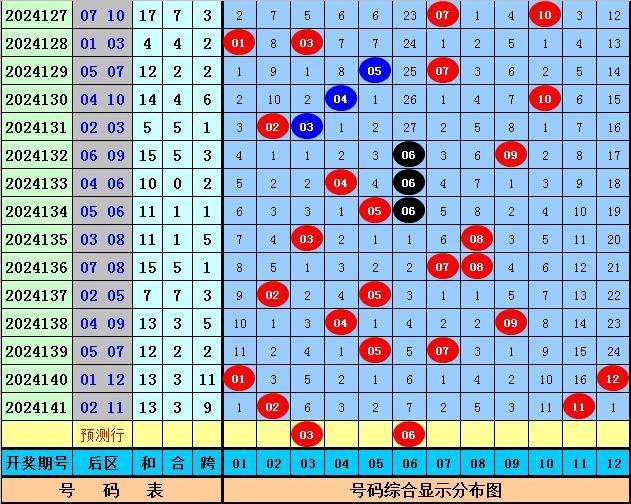 后区分析:后区最近7期开出奖号组合为:03+08、07+08、02+05、04+09、05+07、01+12、02+11,其中一奇一偶组合开出6次,全奇组合开出1次,全偶组合没有出现,本期后区关注一奇一偶组合,参考号码03、06。
