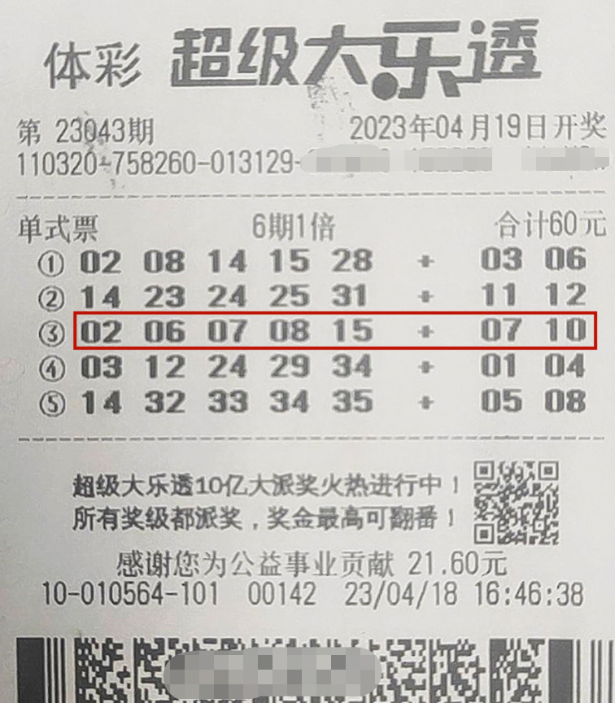 每到大乐透派送期,百万级的二等奖就会频繁出现在彩市中。4月15日,大乐透23041期开奖,常州小伙沈先生凭借一张多期追加倍投票揽获当期5注追加二等奖,由于派奖加持,他最后的总奖金达到了105万多元。